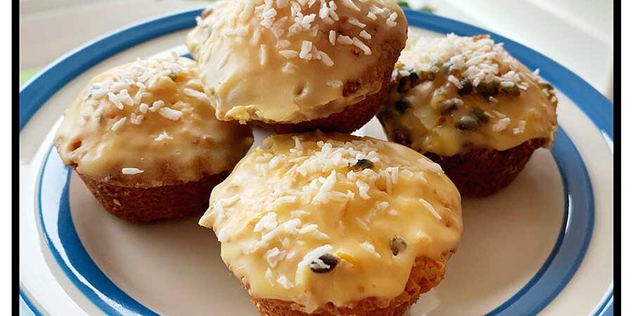 Coconut Friands with Passionfruit Glaze, Lemon Curd, and Mini Bakewell Tarts