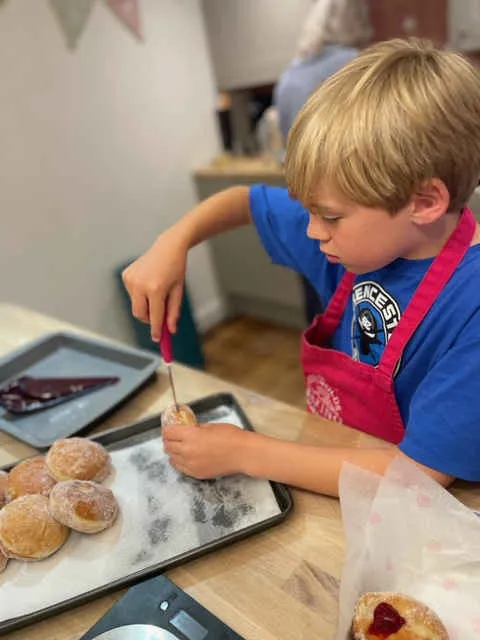 You’re never too young to start baking! Here is STAR BAKER Isaac from a recent ‘Delectable Doughnuts’ baking class who, together with his mum Abbi, spent a creative evening with me making delicious doughnuts.